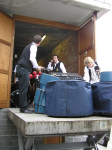 In de begintijd van de harmonie bestond het slagwerk slechts uit een grote en kleine trom. In de periode onder Tony Van Aerschot kwam daar verandering in. Er werden twee Hudson Pauken, een drumstel en later een concert basdrum aan het slagwerk toegevoegd. Om dat op verplaatsing mee te krijgen was er gespecialiseerd vervoer nodig. Wie anders dan Jeanke de melkboer had zo een overdekte aanhangwagen? Hij was onze eerste vrachter bij concerten en verplaatsingen. Later heeft Tony zelf een gesloten aanhangwagen gekocht. Maar toen Tony in 1995 stopte als voorzitter en als spelende muzikant, zat de harmonie zonder transportmiddel. Je kan dus al raden hoe opgelucht we waren met de aanhangwagen van Cyriel.